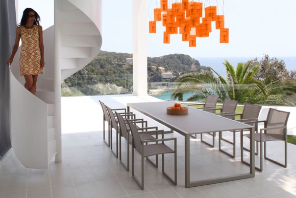 ROYAL BOTANIA Ninix table fauteuils extensible inox plateau verre ceramique hpl teck 4-couleurs